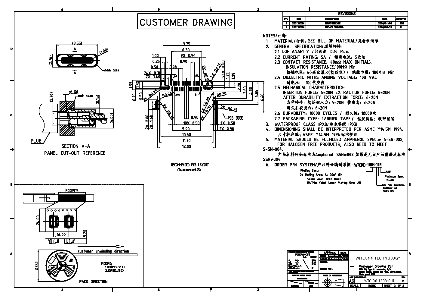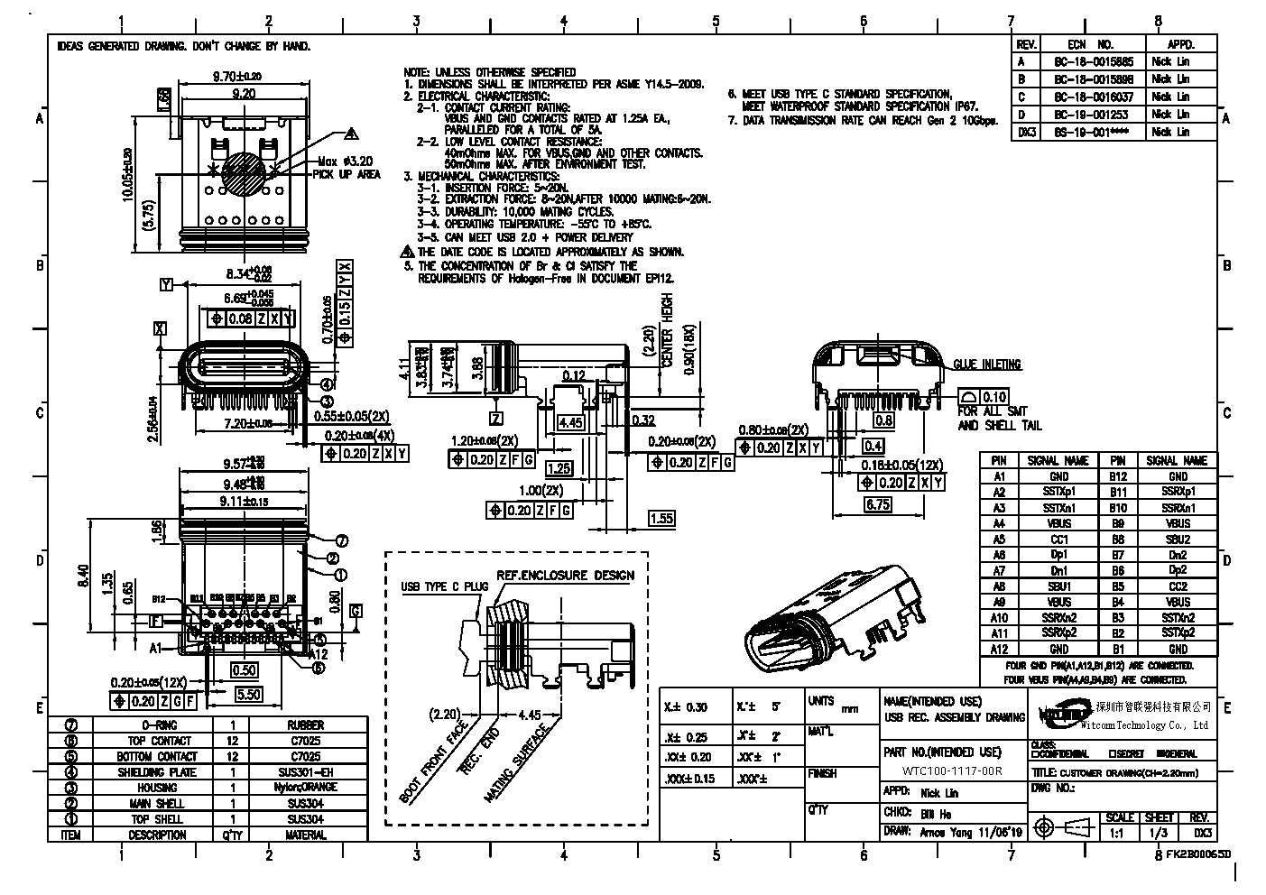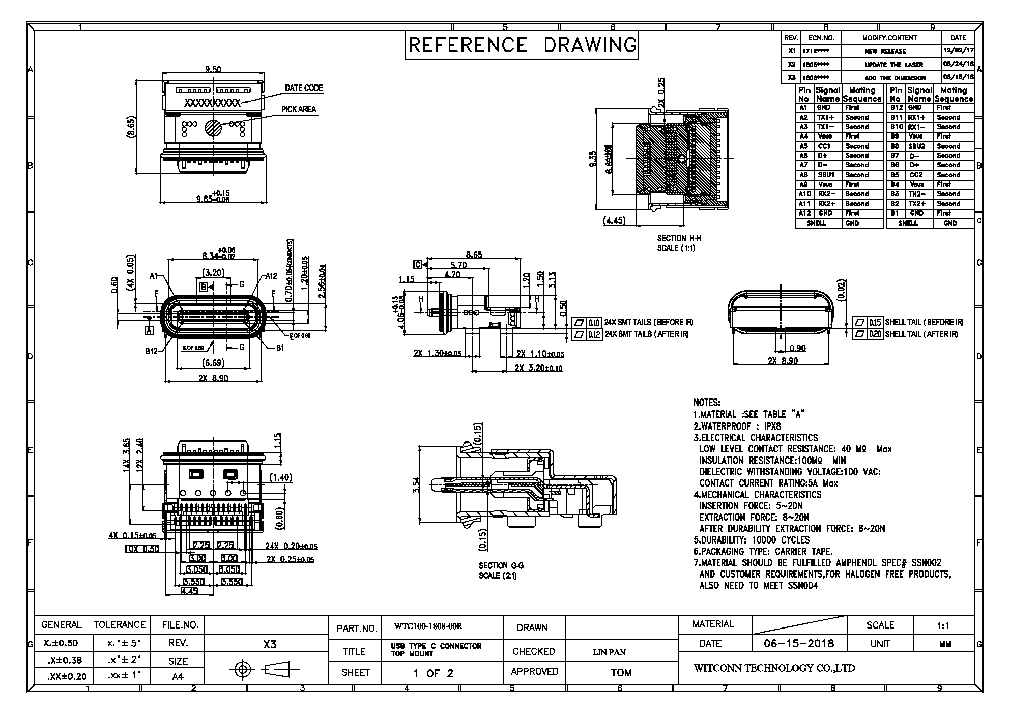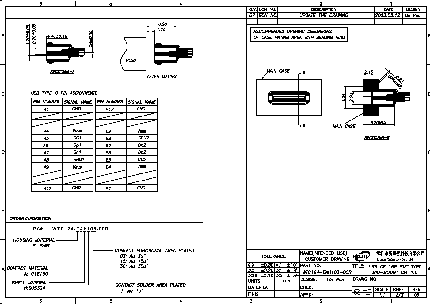 24PIN 沉板带螺丝孔IPX8防水typec 规格书