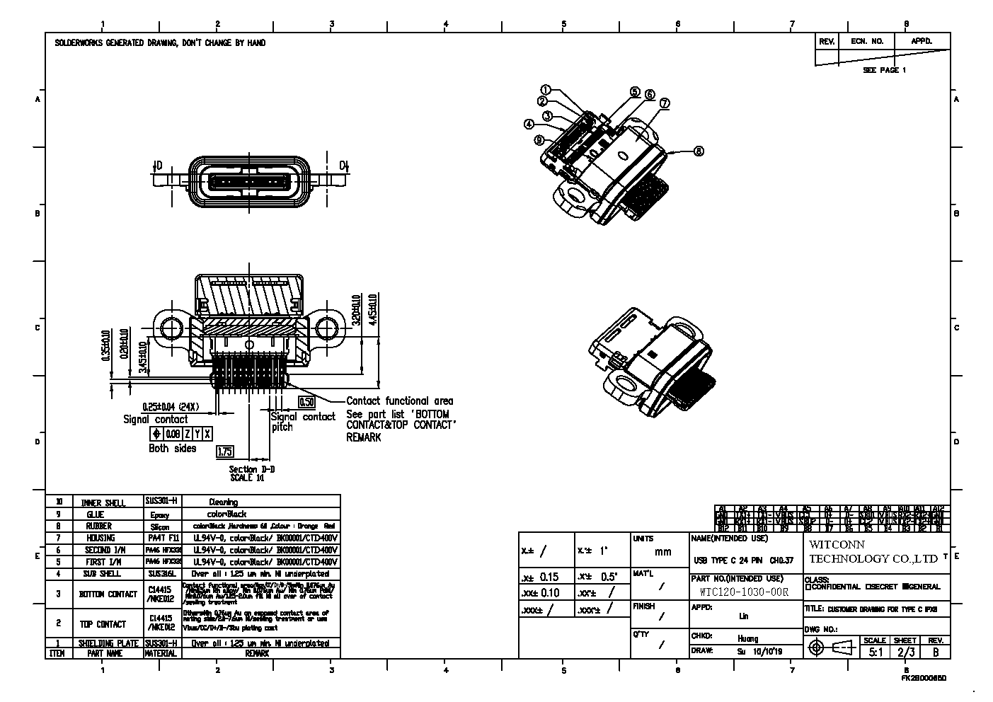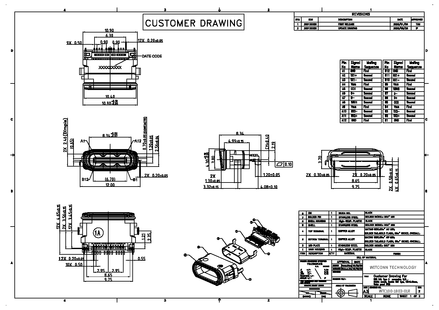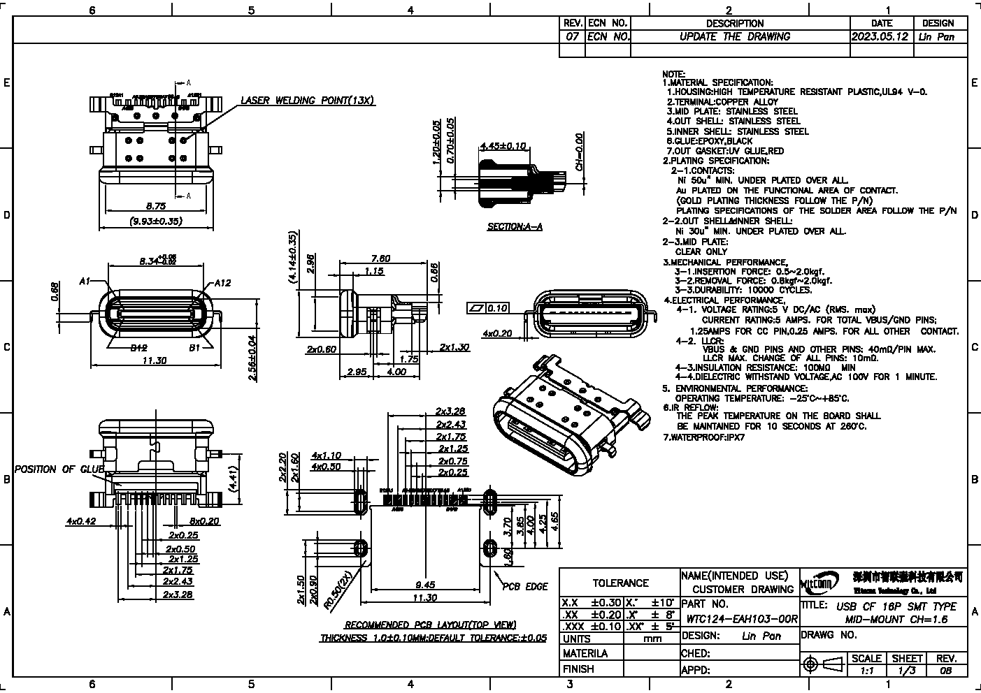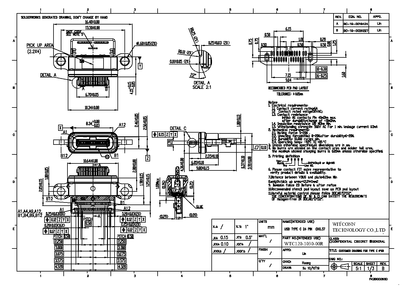 24PIN 沉板带螺丝孔IPX8防水typec 规格书