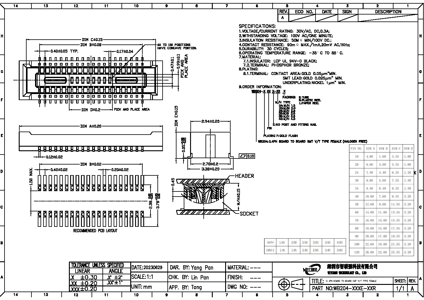 0.4PH 合高1.5~4.0 板对板连接器 支持软板到硬板连接。