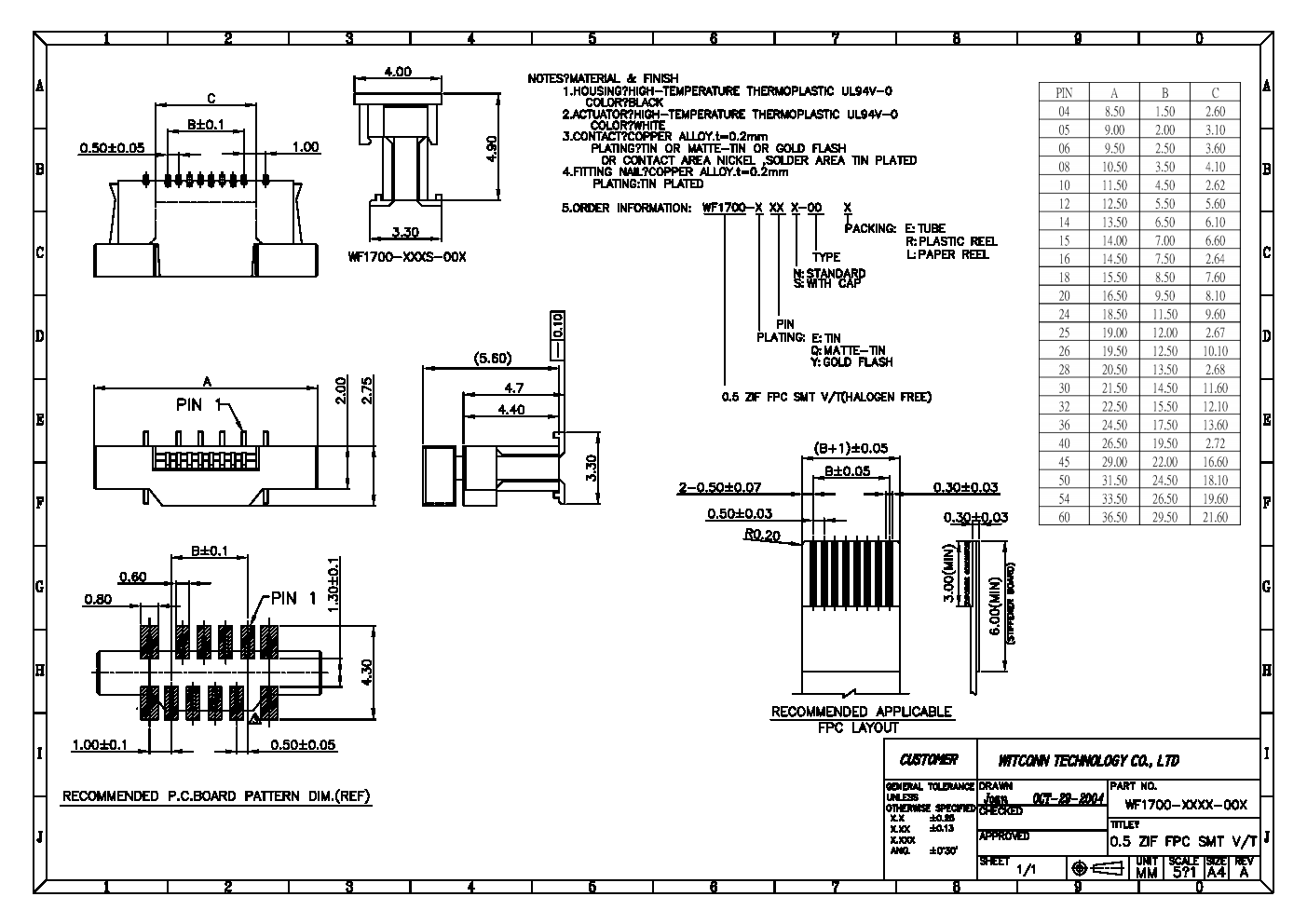 该系列FPC产品料号是WF1700-XXXX-00X,增强盖子和咬合力设计,广泛应用于安防、打印机等电子设备。